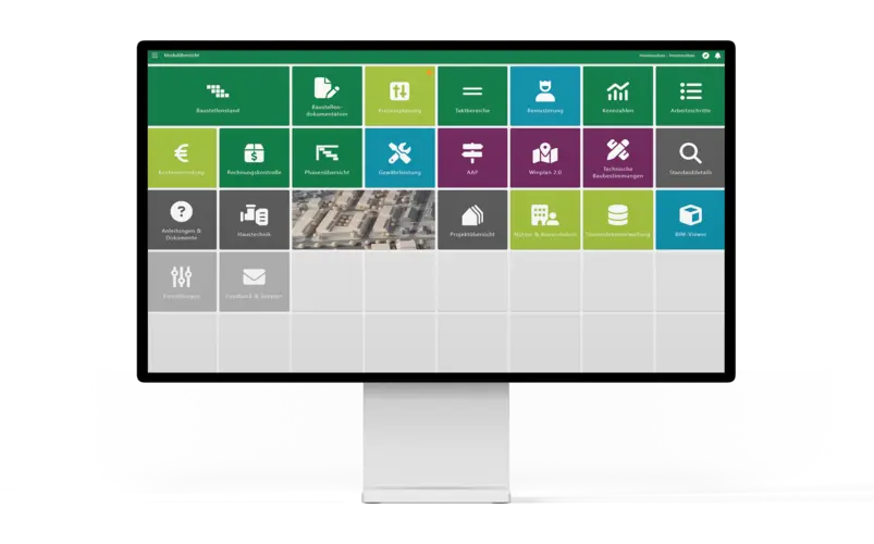 Die digitale Baustelle beginnt bei internen Prozessen und endet in der Immobilie. Softwarelösungen und Datenbanken (ERP, DMS, CRM, BIM) bewältigen die Datenflut und sichern die effiziente Planung und Ausführung. Simulationen oder 3D-gestütze Planungen unterstützen den Baufortschritt. Moderne Logistikkonzepte und die Integration neuer Technologien (z. B. Datenbrille oder Exoskelette) optimieren die Prozesse auf der Baustelle und in der Verwaltung.