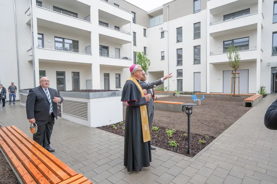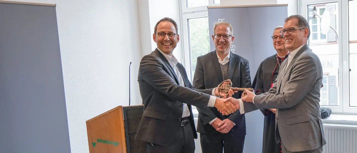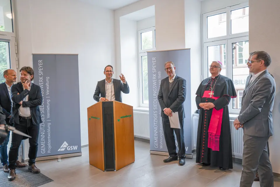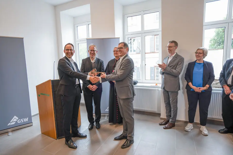 Zur feierlichen Einweihung am 17. Mai konnte eine beachtliche Anzahl von Gästen begrüßt werden, darunter Vertreter von Stadt, Kirche, Banken sowie Projektbeteiligte und zukünftige Anwohner. Matthias Ryzlewicz, Geschäftsleitung der weisenburger bau, übergab symbolisch den Schlüssel an GSW-Geschäftsführer Christian Rohatyn und gratulierte zum gelungenen Projekt.