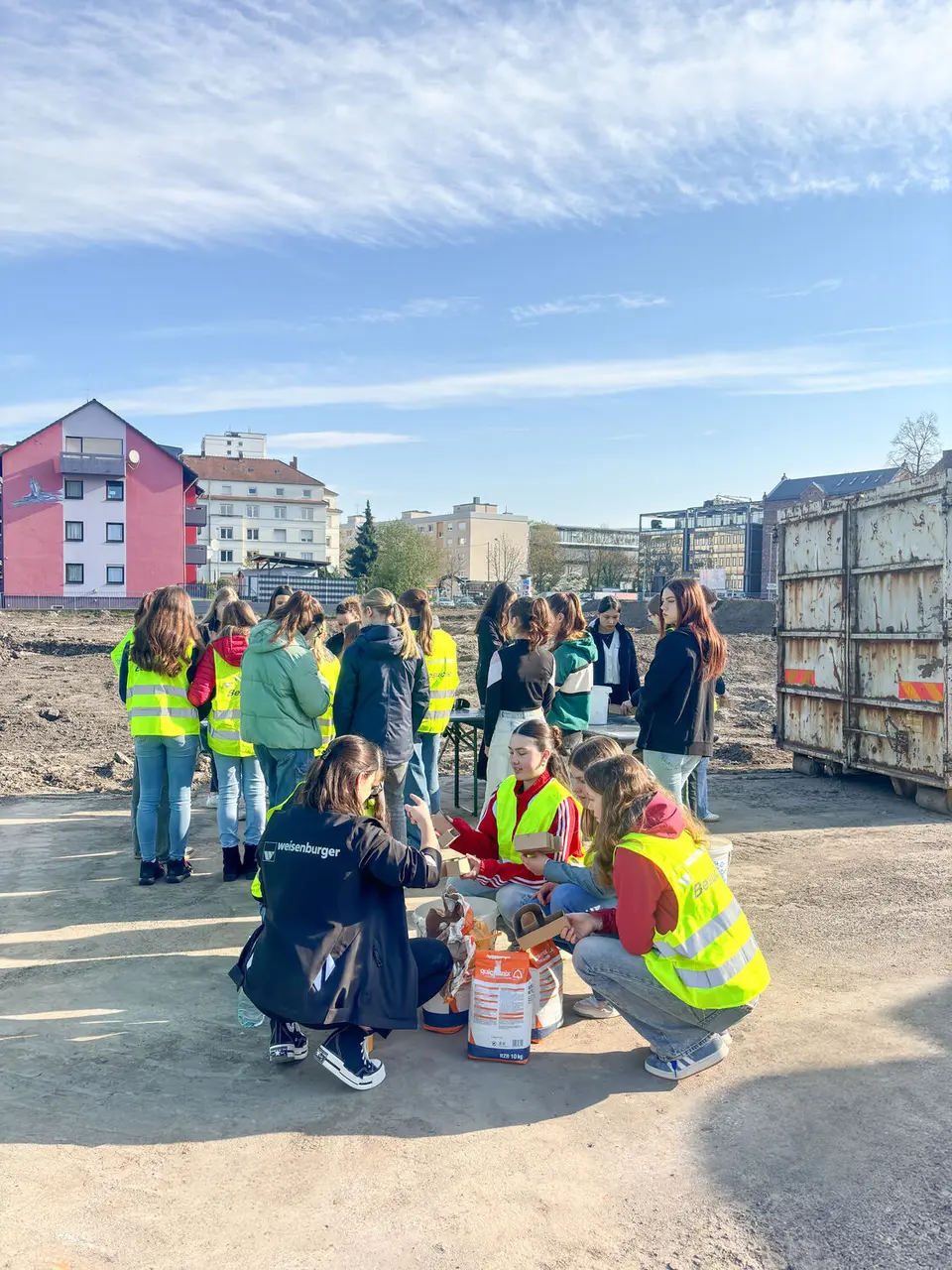 17 Schülerinnen aus verschiedenen Jahrgangsstufen nutzten die Gelegenheit, praxisnahe Einblicke in die Bau- und Projektwelt zu gewinnen. Nach einer Einführung startete das Programm mit praktischen Übungen auf einer Baustelle der weisenburger bau in Karlsruhe. Dort stellten die Teilnehmerinnen Betonwerkstücke in Form ihrer Initialen her. Ergänzt wurde der Tag durch begleitende Teamaktivitäten.