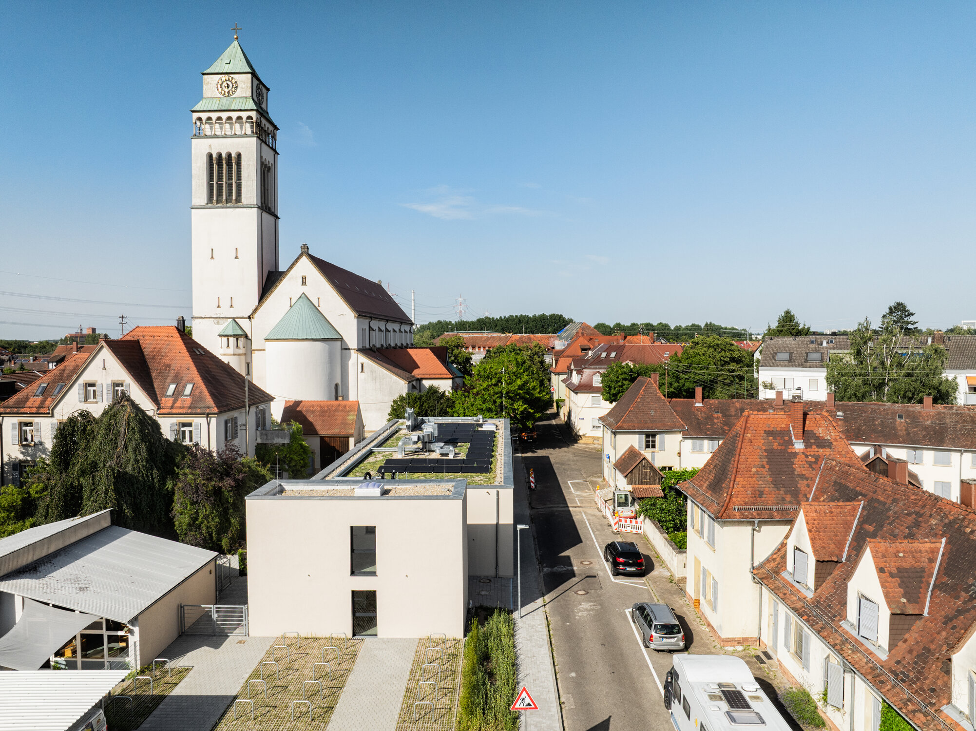 Located right next to the church, the community center is perfectly integrated into social and church life. Its location means that it is within easy reach and encourages active use by all generations. With its modern architecture, the building blends harmoniously into the townscape and enriches public life in the district.