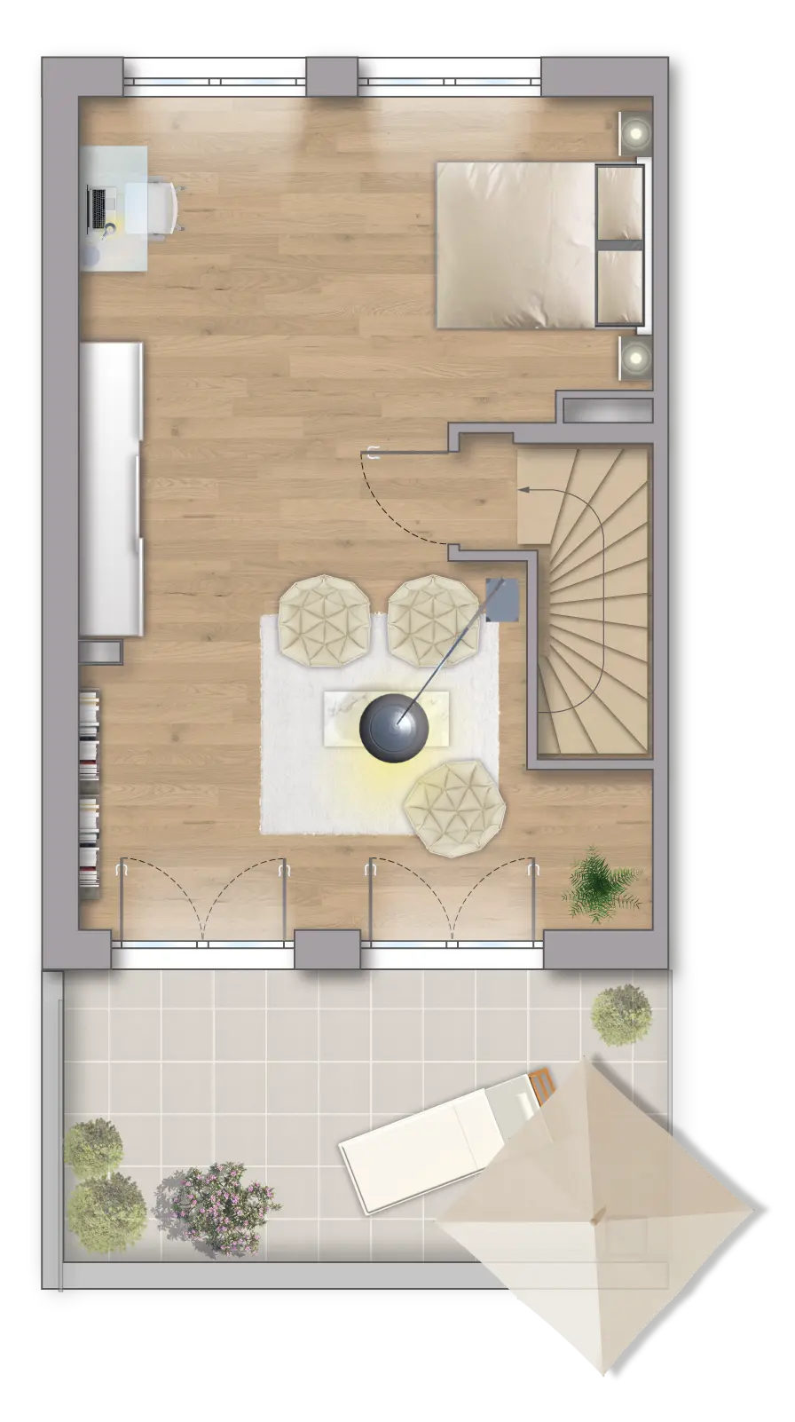 - Großzügige Gärten, Terrassen und Dachterrassen zur Alleinnutzung