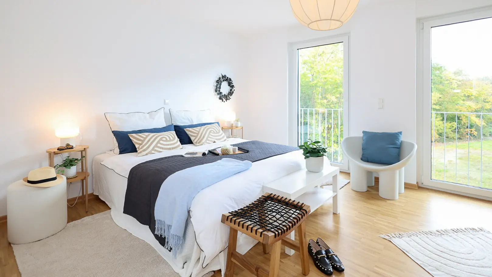 - Echtholzparkett in allen Wohn- und Schlafbereichen